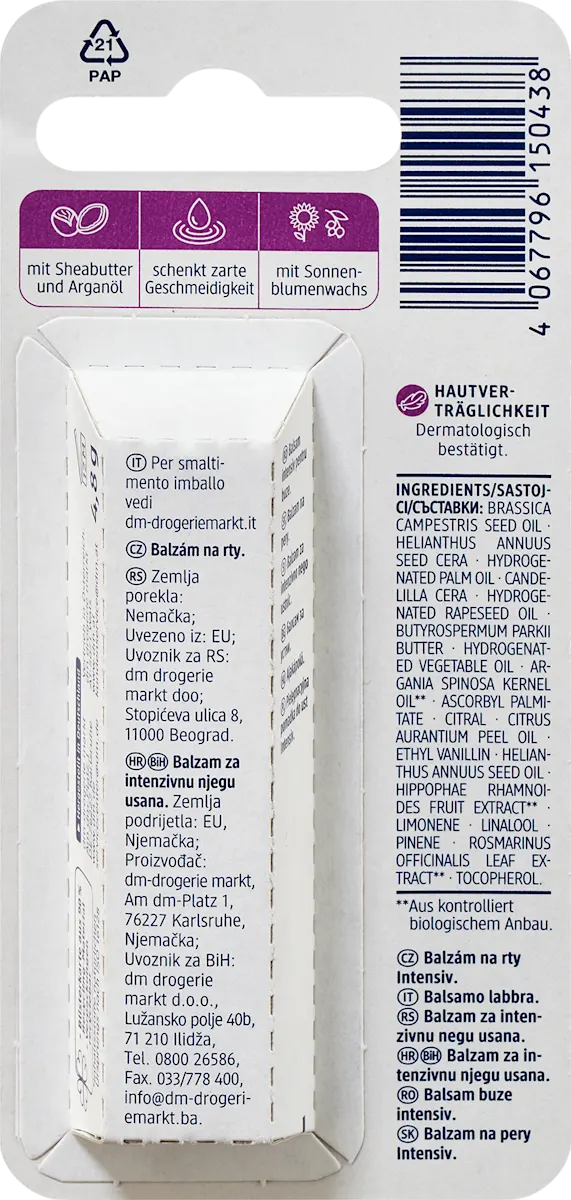 دللي شفاهك مع بلسم الشفاه المكثف من Balea الذي يمنحك عناية فائقة وترطيبًا يدوم طويلاً، لتحصلي على شفاه ناعمة، مرطبة ومليئة بالحيوية.