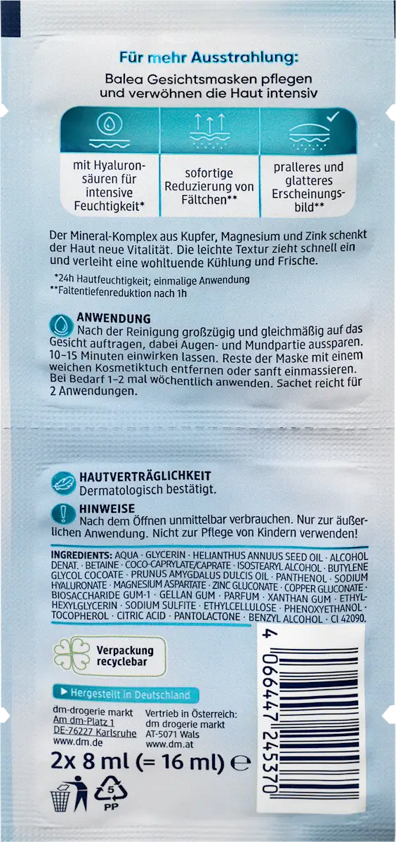 امنحي بشرتك عناية فائقة مع Balea Hyaluron Maske – تركيبة فعّالة تمنحك ترطيباً طويلاً، نعومة ملحوظة وتقليل التجاعيد بسرعة. مثالية لعناية مركزة وانتعاش فوري.